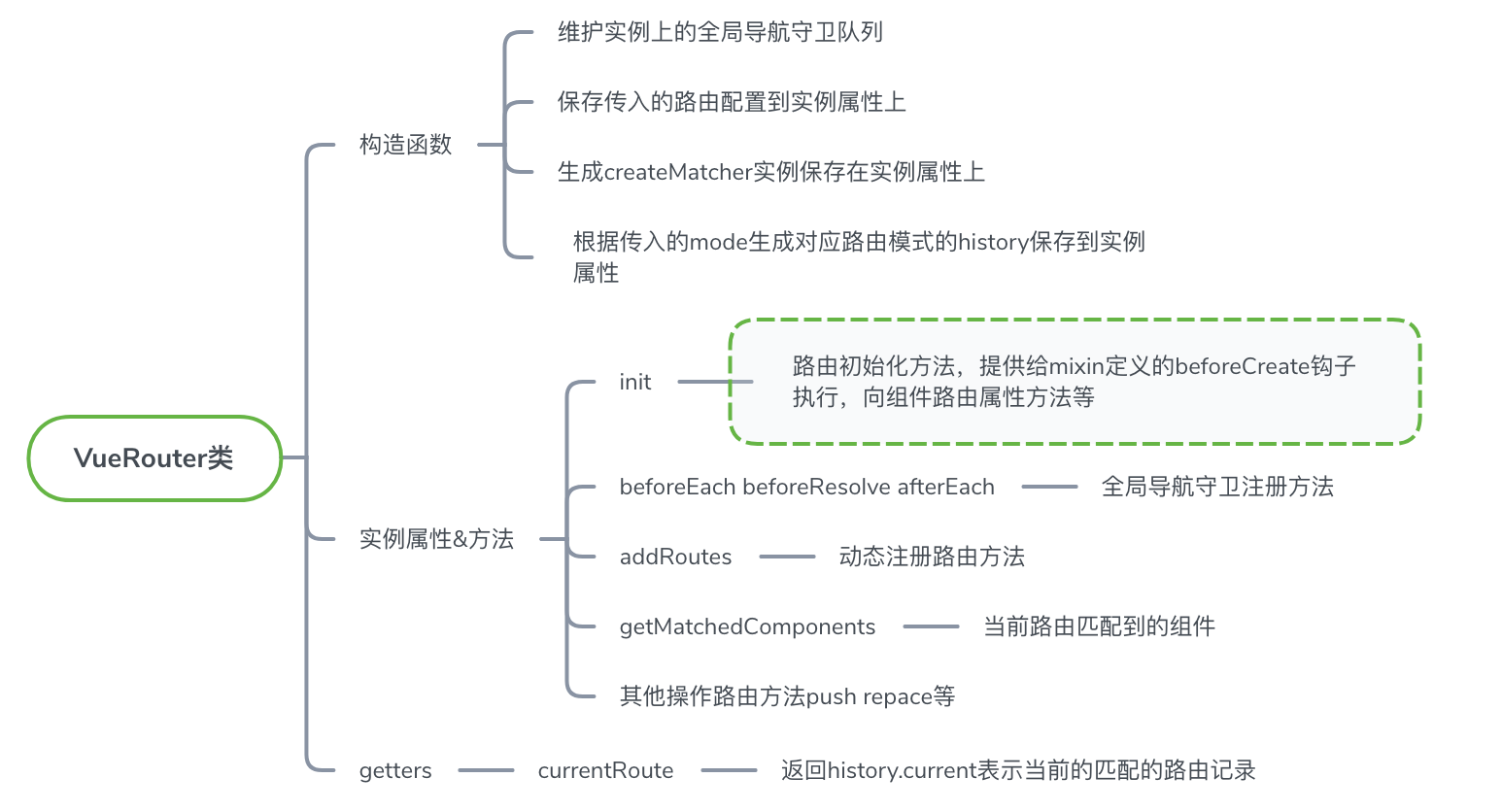 路由实例router是在使用vue-router的时候通过传入路由记录等配置而生成的实例对象,重点在于其VueRouter类的实现。