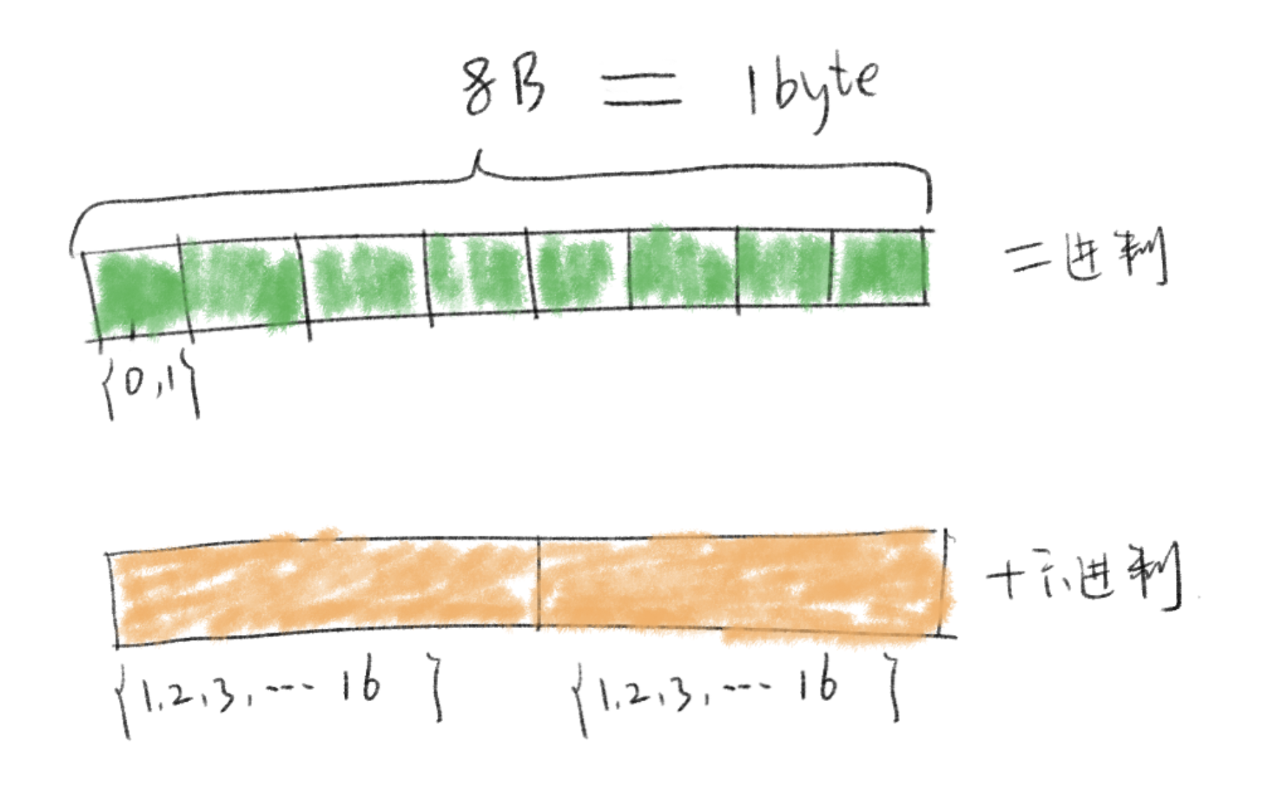 我们知道计算机世界里一个字节是由 8 个二进制位组成,即 1Byte = 8bit (Btye 可以简写为 B,bit 可以简写为 b),8 个二进制位的所有排列组合有 2**8 = 256 种结果;二进制中一个位有 2 种可能结果,而假设一个位有 16 种可能结果的话,8 个二进制位则可以用 2 个 十六进制位表示,因为 2 个 16 进制位所有的排列组合正好有 16**2 = 256 种结果。
