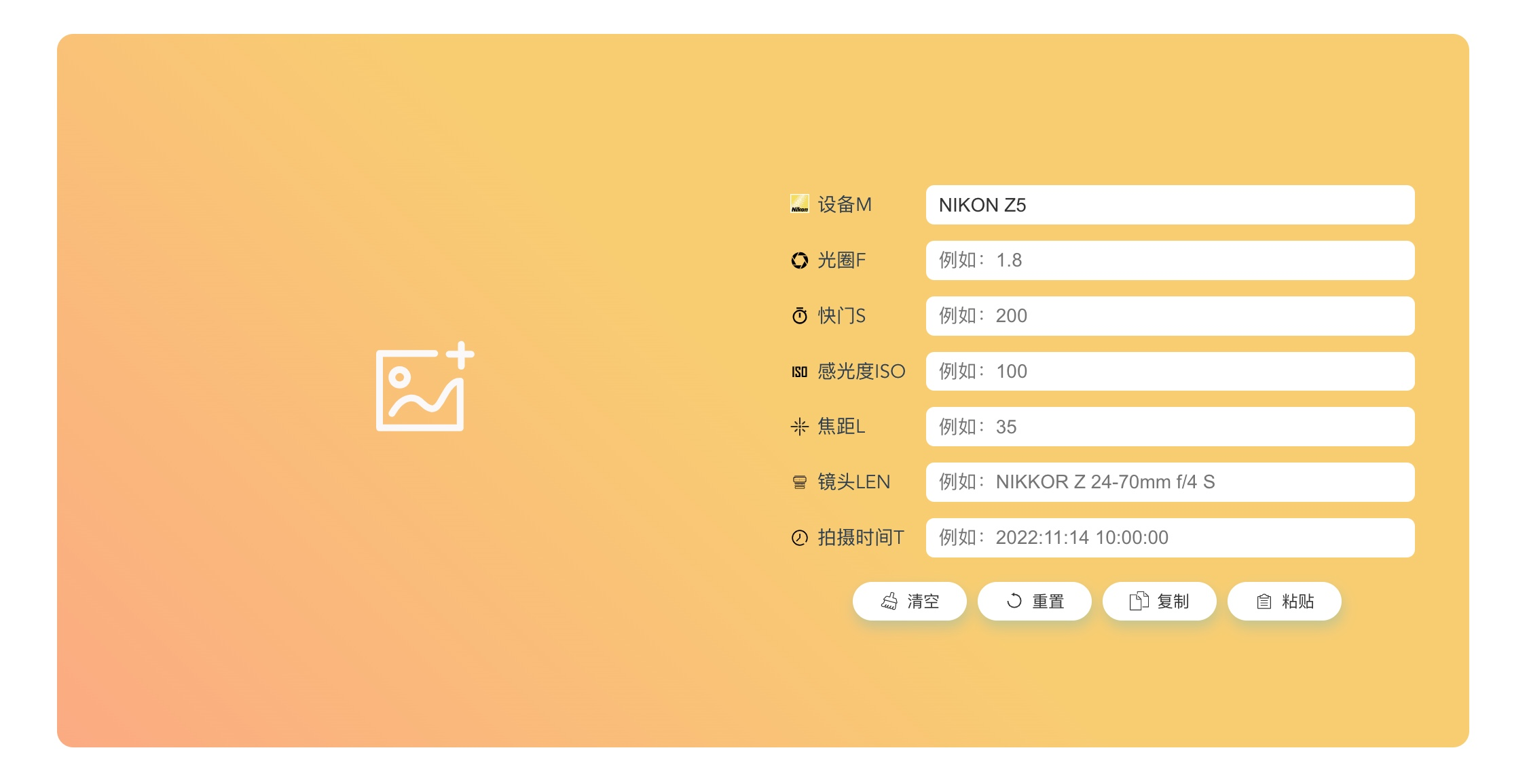 ExifEdit 组件还同时拥有清空、重置、复制、粘贴、保存功能。
