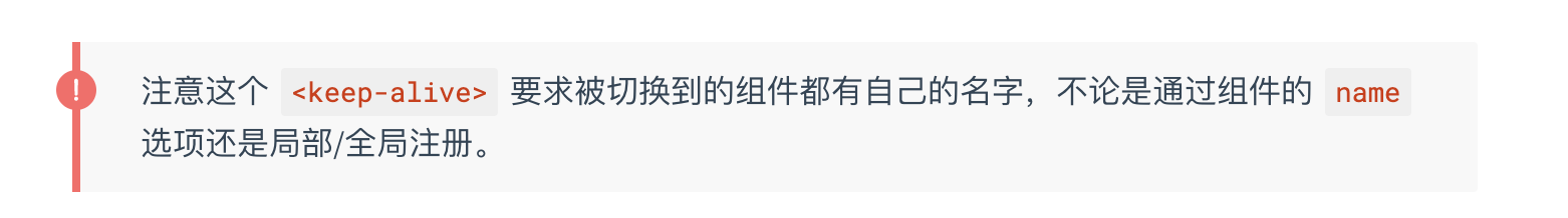 可以排除基本用法的问题,如是继续翻阅vue的官方文档,keep-alive的缓存匹配原理是根据组件的name作为key来进行缓存,官方的提示